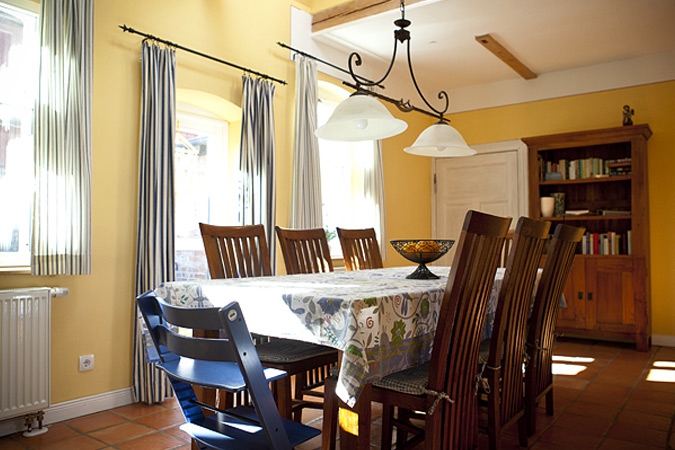 Das denkmalgeschützte Kapitänshaus für 2 - 4 Personen verfügt über einen großzügigen Wohnraum mit Kaminofen und eine komfortabel eingerichtete Wohnküche. Der sonnige Essplatz ist Treffpunkt und Herz des Hauses.